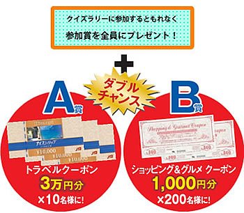 羽田空港ビッグバード第1旅客ターミナルと、第2旅客ターミナルの合計9カ所に、文字が書かれたポスターがあります。すべてのポイントをまわって集めた9つの文字を並べかえて、正しいキーワードを答えると、ゴールで参加者全員に参加賞をもれなくプレゼント!さらに、ゴールした方の中から抽選で当たるダブルチャンスもご用意。さぁ、家族みんなでクイズラリーにチャレンジ!