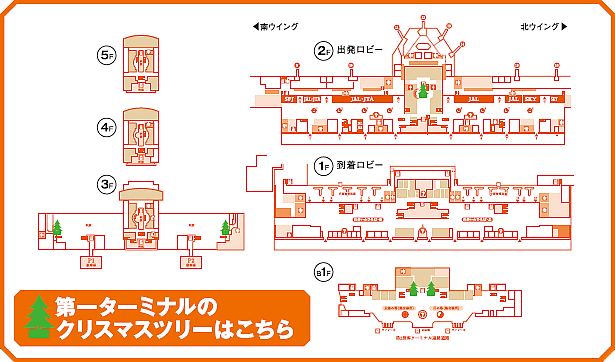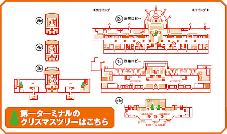 - 空港内のクリスマスツリーの写真を携帯、デジカメで撮影